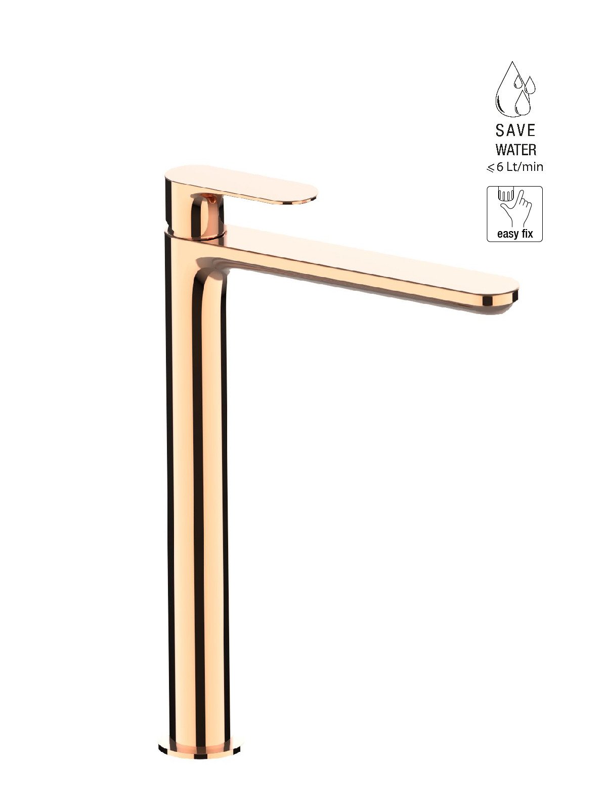 Hoher Waschtischmischer ohne Abfluss energy saving